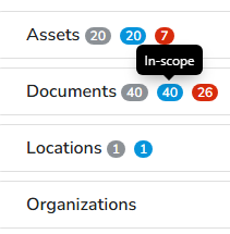 Within the views, there will be 3 color coded bubbles identifying the following totals: number of artifacts (gray), in-scope (blue) and non-compliant (red).