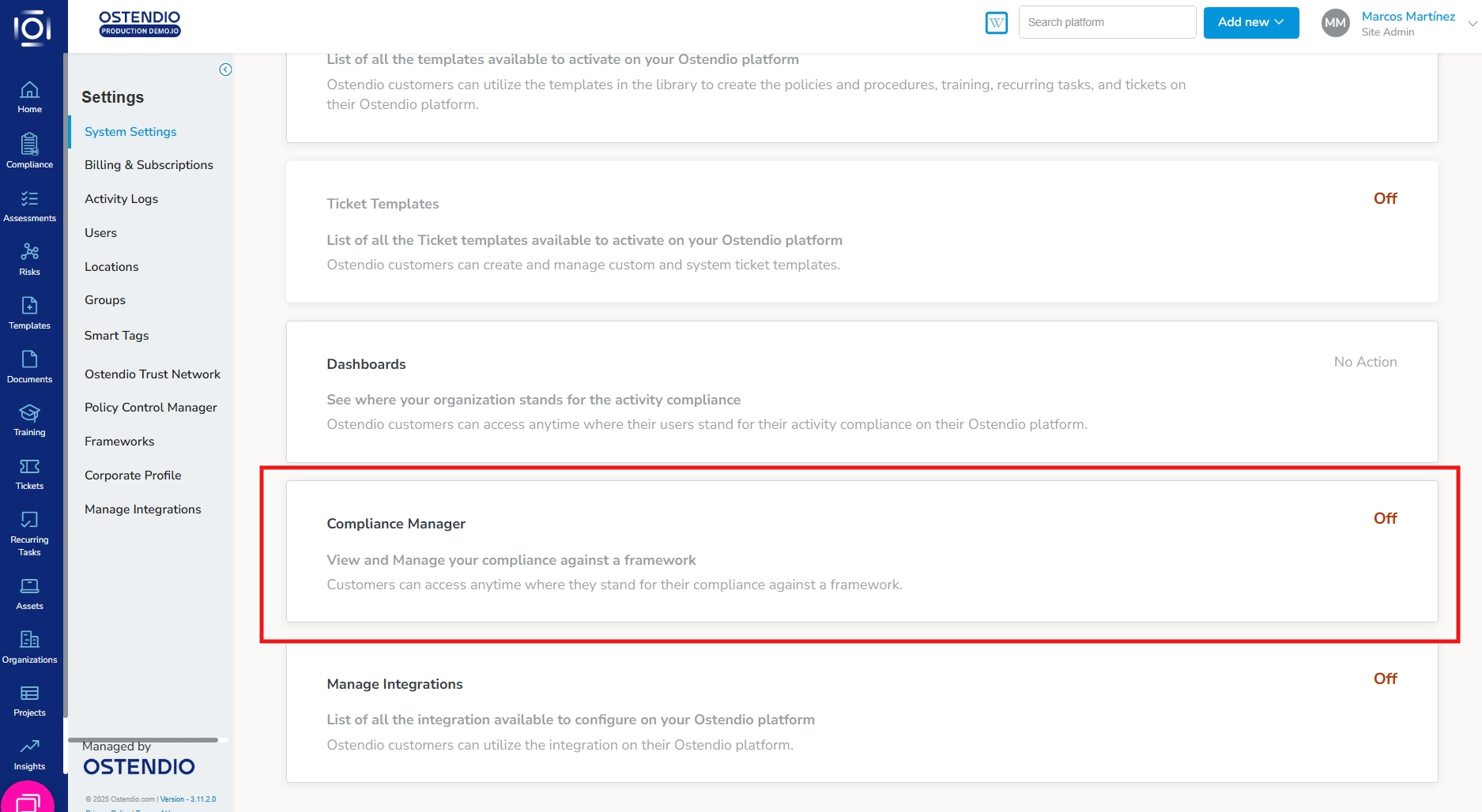 The Compliance Manager is a single consolidated operational view, designed to manage real-time compliance and non-compliance. Available to Premium and Enterprise users that have access to the organization activity (instead of targeting admin/site admin, this accounts for all roles).